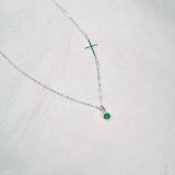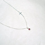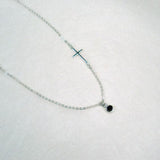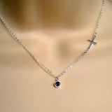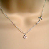 This sideways cross necklace is made with a small rose quartz gemstone charm known to represent love. It's simple and charming, making it great for any occasion.