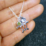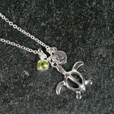 This personalized turtle charm necklace is a great gift idea for your loved one. The necklace is made with a sterling silver turtle charm, a tiny little gemstone, and a hand-stamped initial tag.
